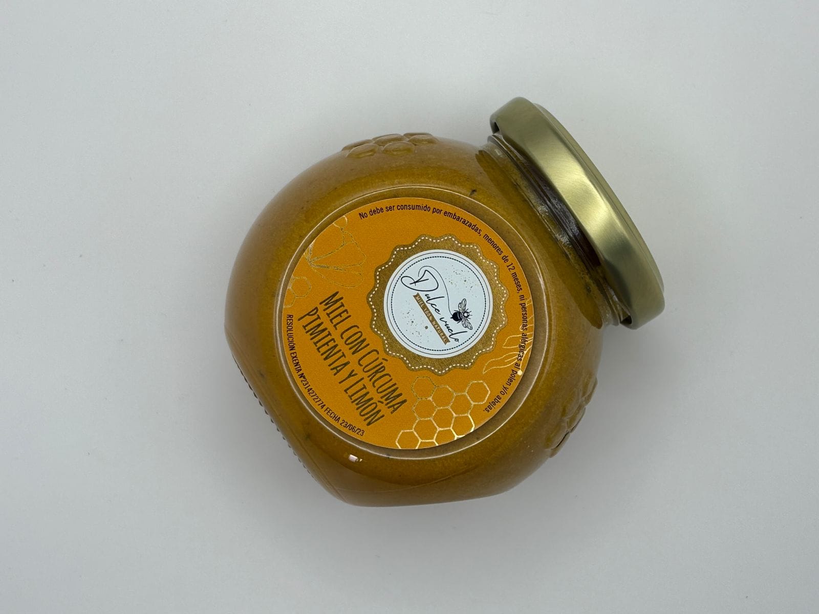 Disfruta de una miel sabrosa y llena de beneficios. Combina las bondades naturales de la miel con el poder antiinflamatorio de la cúrcuma, realzado con un toque de pimienta para activar sus propiedades. Prepara tu leche dorada o un delicioso dressing para tus ensaladas y déjate sorprender por este superalimento lleno de sabor y bienestar.